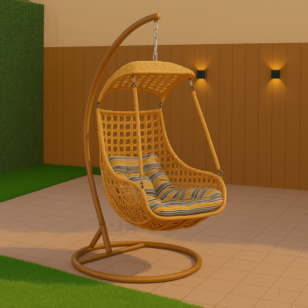 النوع : ارجوحة خارجية اللون: بيج ارجوحة بمقعد واحد الخامة الاساسية : هيكل معدني مع تشطيب بخوص ( wicker ) خامة التنجيد : قماش فيبر خامة الارجل : معدن الابعاد : الطول : 100 سم العرض : 100 سم الارتفاع : 190 سم صفاته : مثالي للاستخدام الخارجي والداخلي تعليمات العناية :المسح بمناديل مبللة الضمان : ضد عيوب الشحن والتسليم بلد المنشأ : الصين