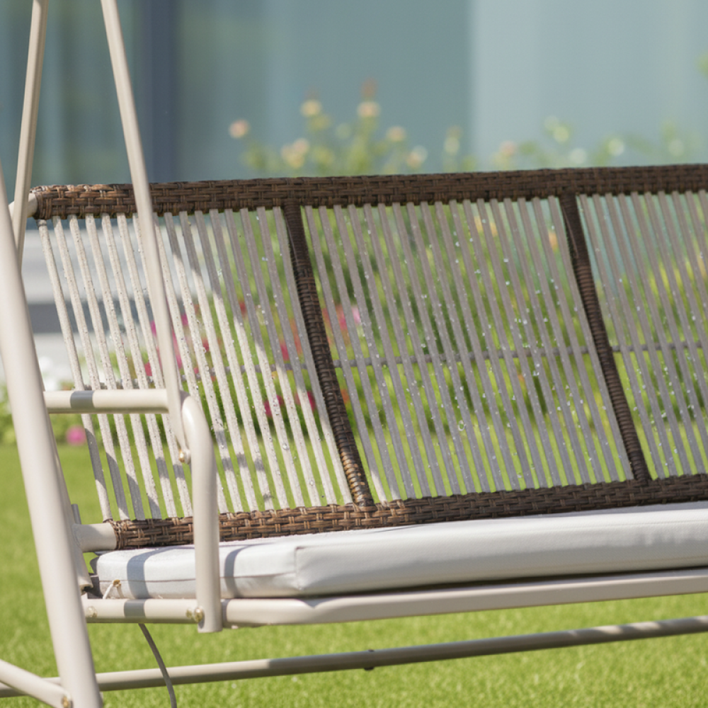 أرجوحة خارجية ثلاثية المقاعد باللون البيج مثالية للعائلة والاسترخاء