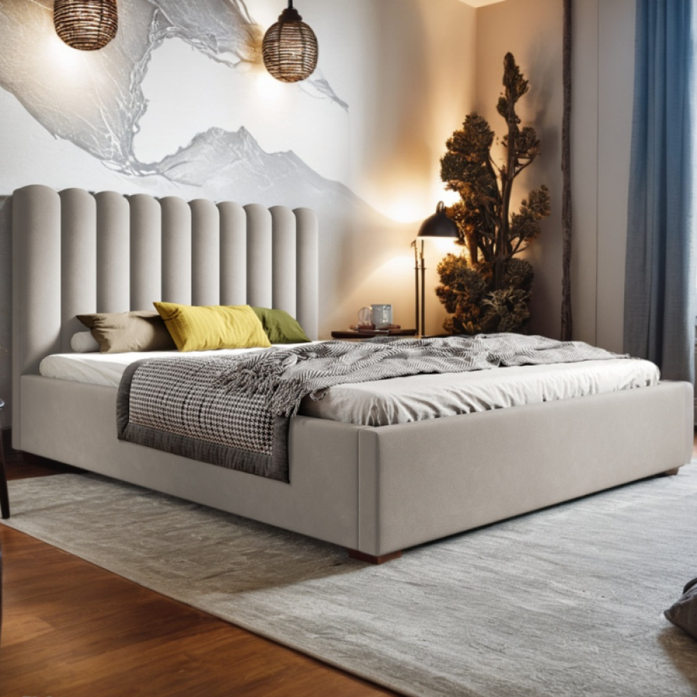 سرير كينج قماش مخمل لون بيج 200 × 200