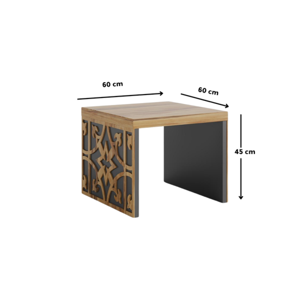 تمثل هذه الطاولة الجانبية الخيار المثالي لمن يبحث عن البساطة والأناقة. فهي مصنوعة من الخشب الطبيعي الذي يضيف إحساسًا بالدفء والرقي إلى الغرفة، مع تصميم عملي يناسب الاستخدام اليومي أو كعنصر ديكوري أنيق.