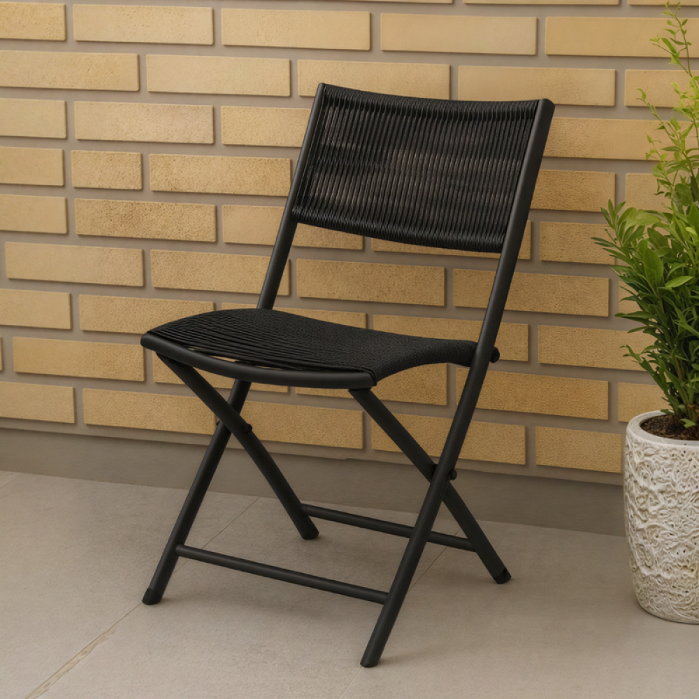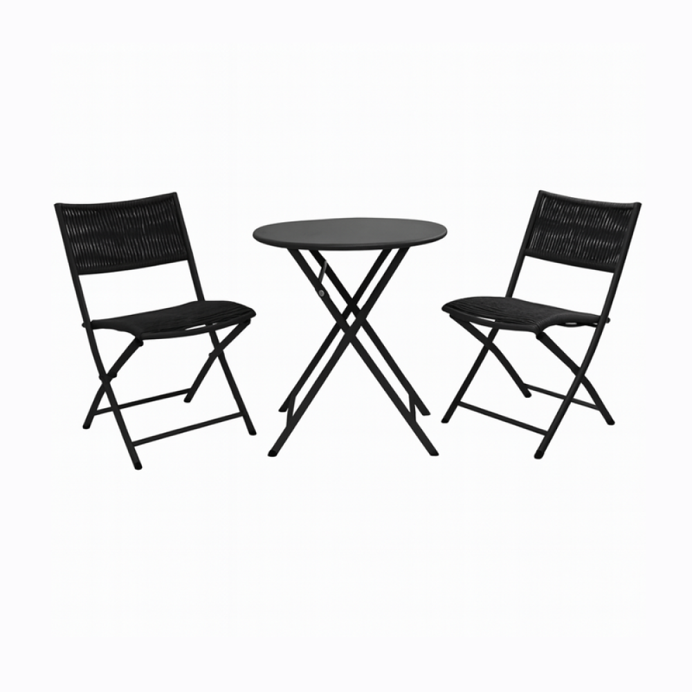 طقم بلكونة معدني قابل للطي – طاولة مع كرسيين أسود