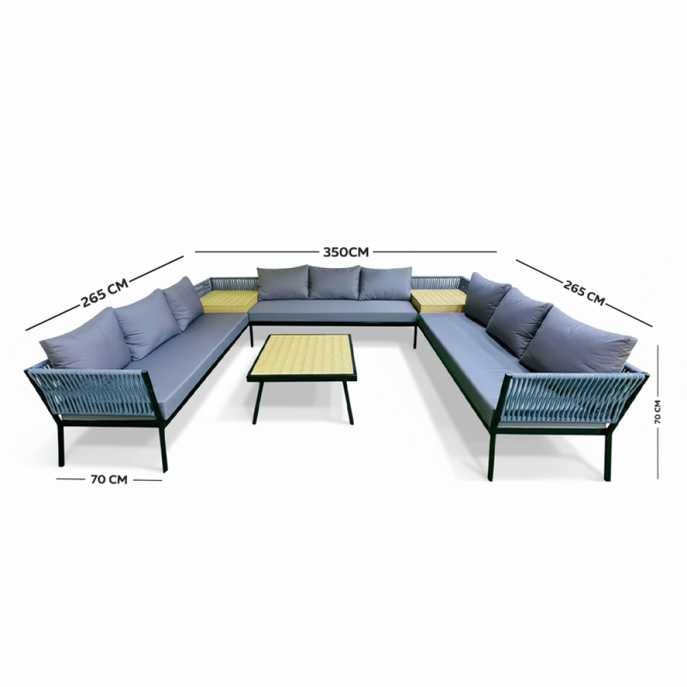 الخامة: قماش خاص للجلسات الخارجية مقاوم للماء + هيكل حديد