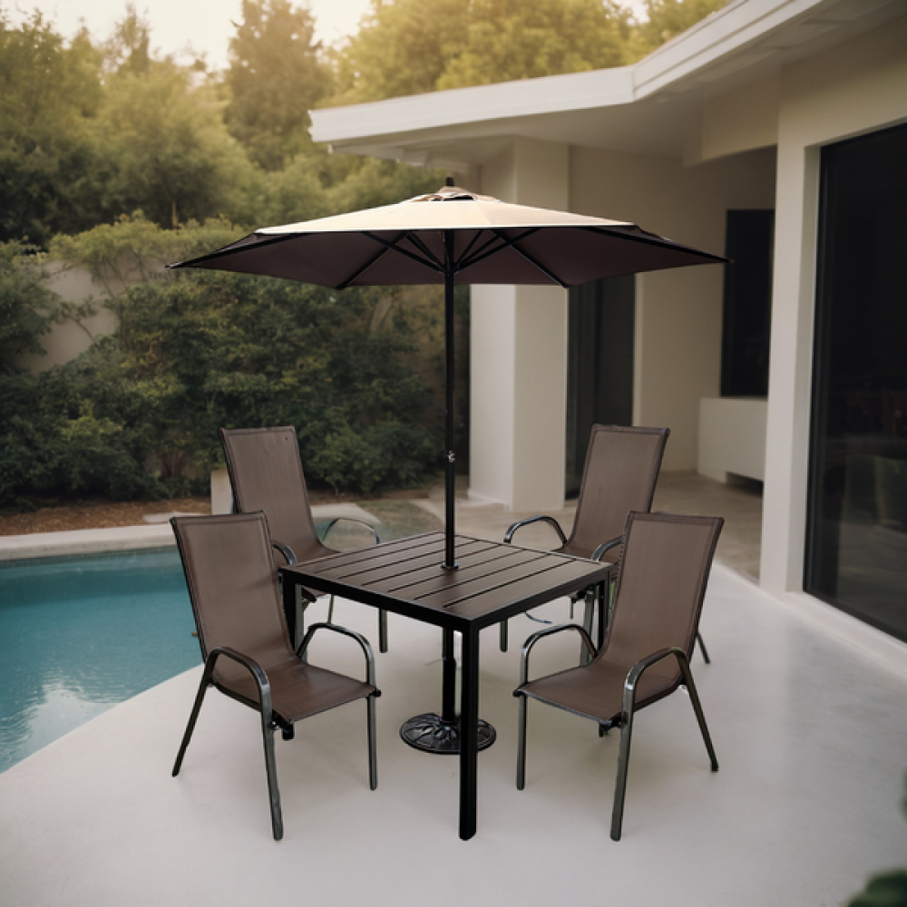 طقم جلسة خارجية لون بني ضد الماء مميزة مكونة من 5 قطع