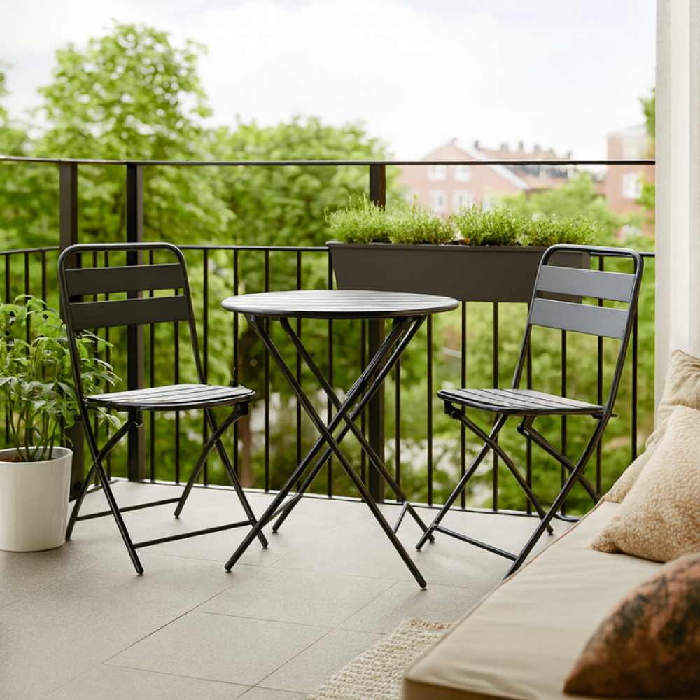 طقم جلوس معدني أنيق للبلكونة والحديقة (قابل للطي)