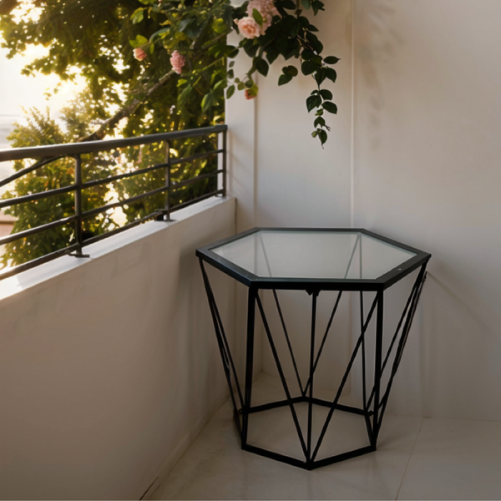 لون الطاولة: أسود بسطح زجاجي شفاف