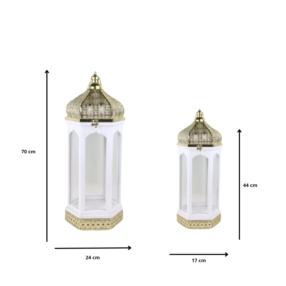 فانوس 1: الطول 24 سم ، العرض 24 سم ، الارتفاع 70 سم