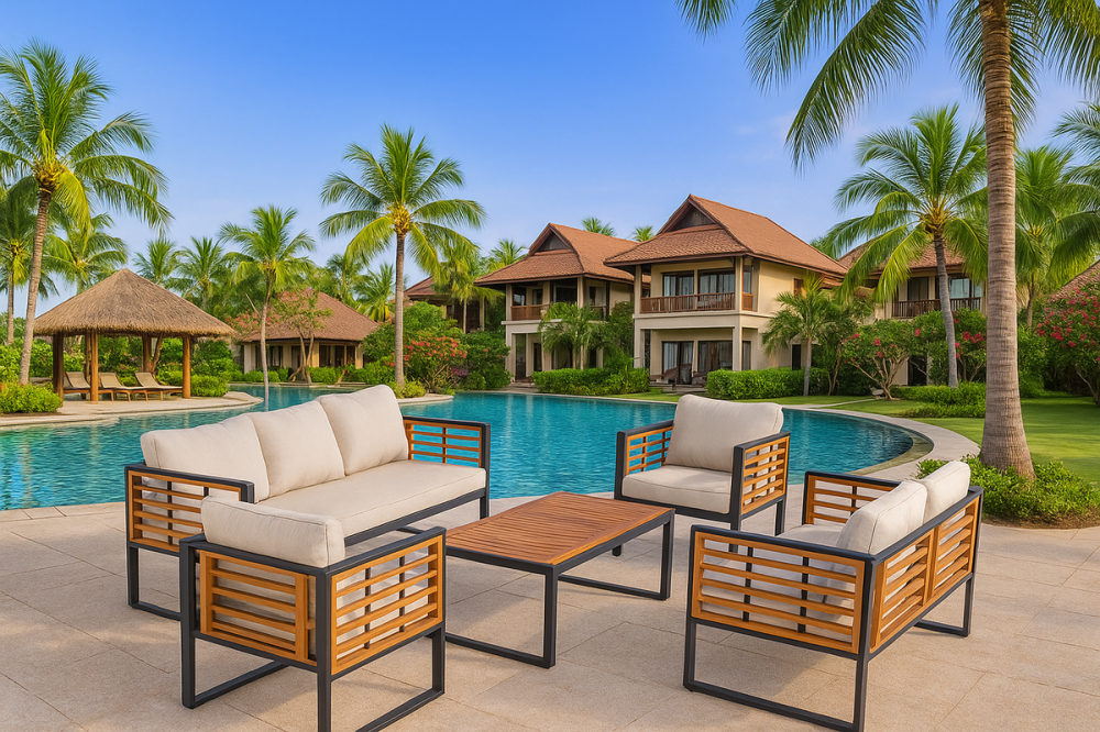 طقم كنب خشبي عصري للجلسات الخارجية بتصميم أنيق ومتين – بيج