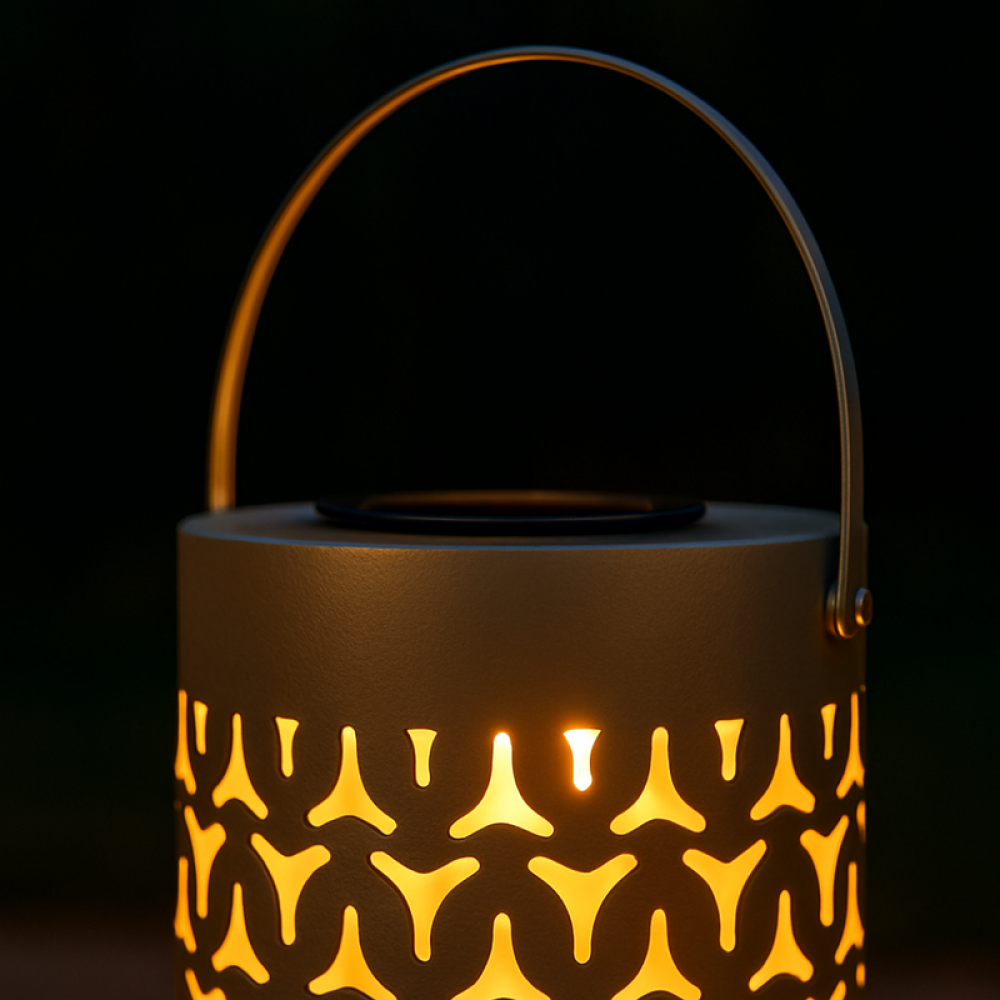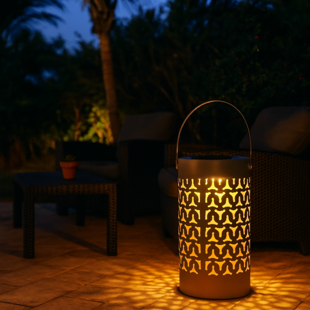 تصميم عصري يناسب الجلسات الخارجية. يوفر إضاءة ناعمة ومريحة للعين. يمكن شحنه عبر الطاقة الشمسية أو منفذ USB. نقش زخرفي أنيق يُنتج تداخلات جميلة من الضوء والظل. المميزات: تصميم عصري يناسب الجلسات الخارجية. يوفر إضاءة ناعمة ومريحة للعين. يمكن شحنه عبر الطاقة الشمسية أو منفذ USB. نقش زخرفي أنيق يُنتج تداخلات جميلة من الضوء والظل.