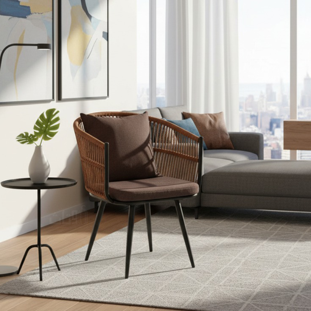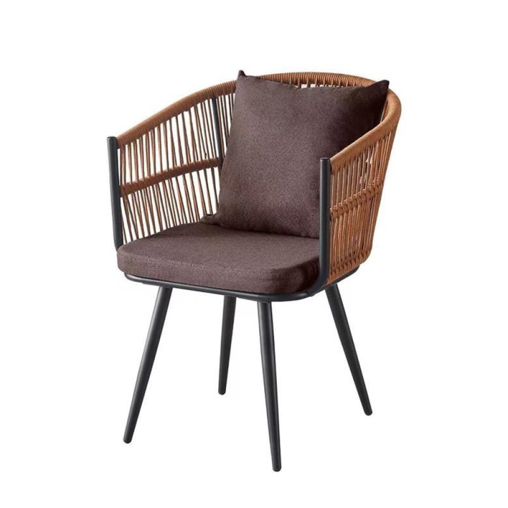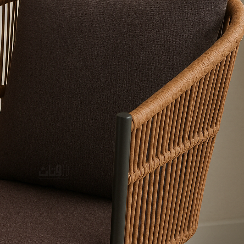 كرسي خارجي راتان من الخشب والمعدن بلون بني