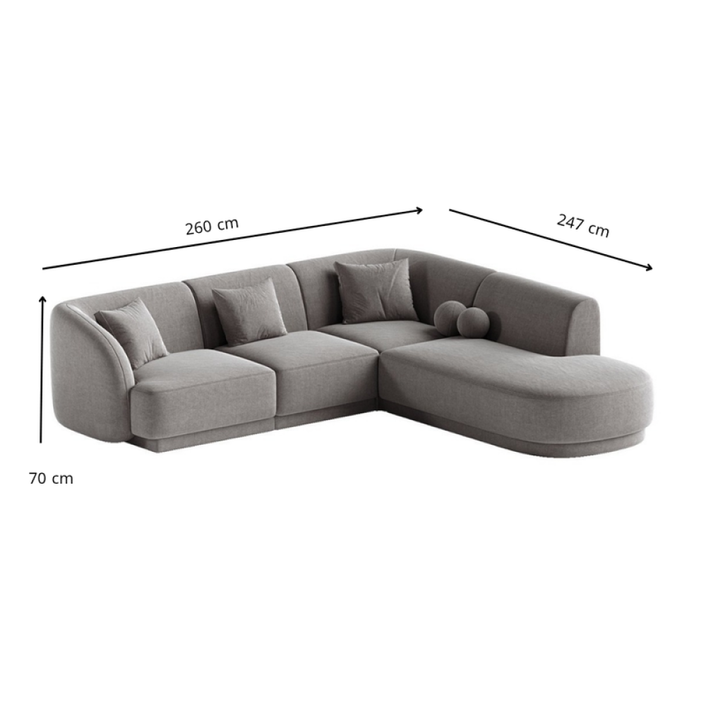 كنبة زاوية فاخرة بتصميم منحني ووسائد دائرية – رمادي