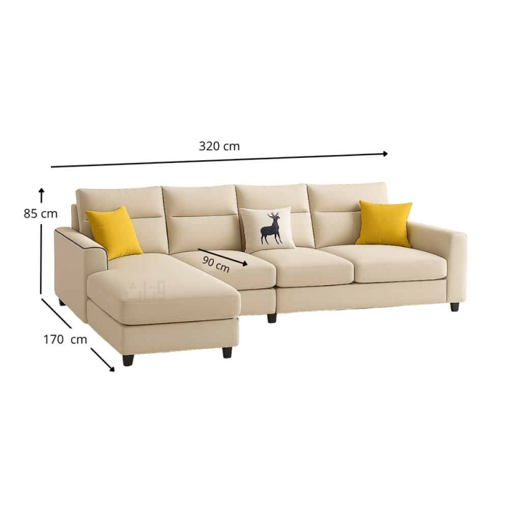 • ارتفاع الكنب كامل مع المخدات :85 سم.