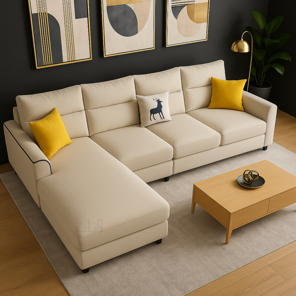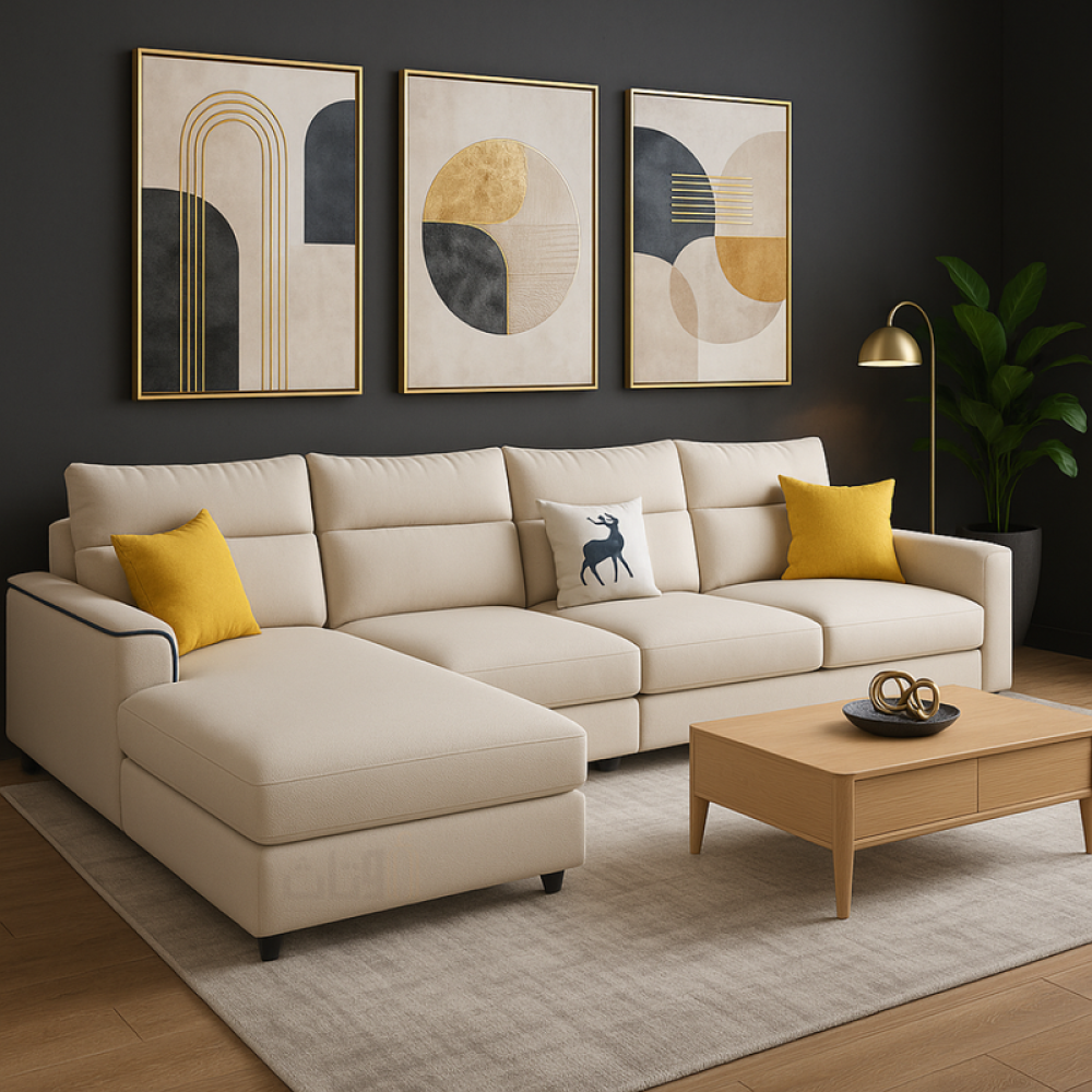 • كنب متصل ذو مساحة واسعة تناسب لغرفة المعيشة لتحظى بوقت ممتع مع عائلتك.