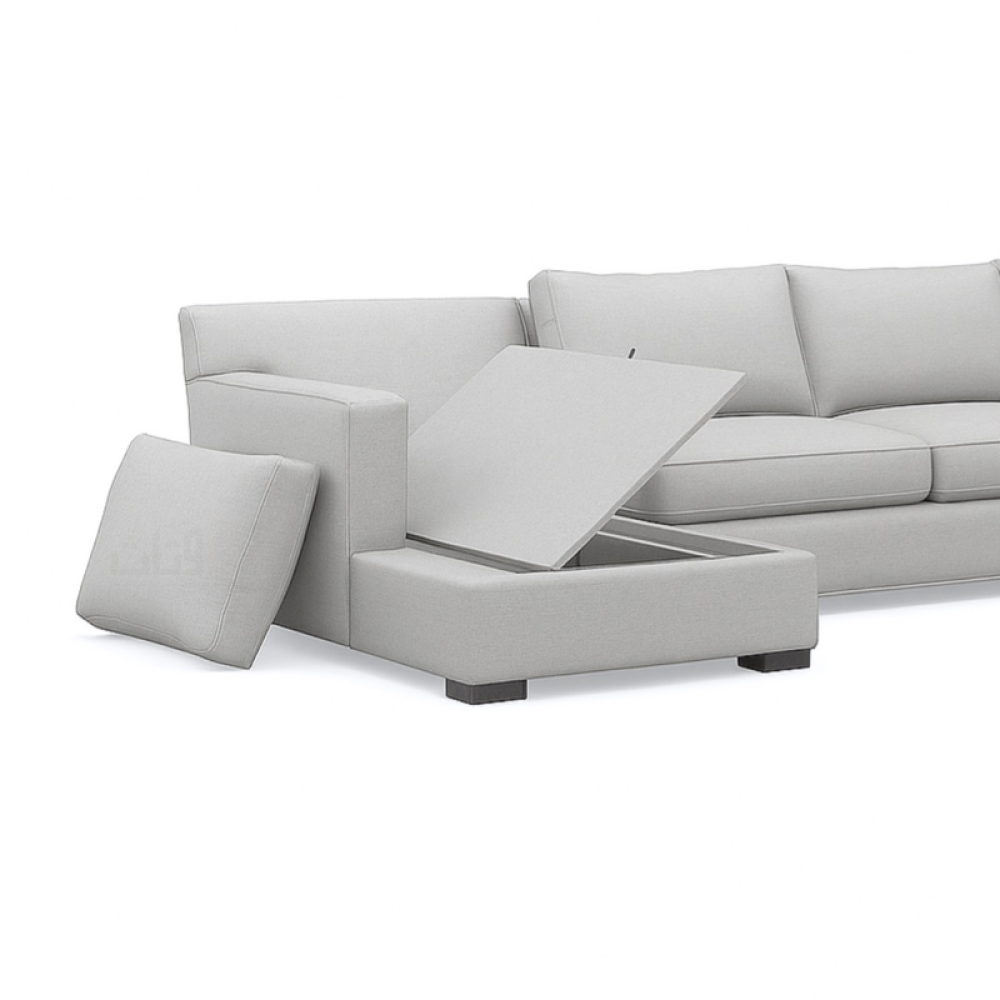 كنب متصل بزاويتين بخزانة لون رمادي عصري ومميز ويتسع لعدد كبير من الأشخاص، مما يجعله مناسبًا للجلسات العائلية. صُنع باستخدام مواد عالية الجودة مثل الكتان، وهي المادة الأكثر طلبًا من عملاء أوتاث، مميز بأنه يوفر مساحة تخزين ممتازة ، سيضيف هذا الكنب المتصل الكثير من الجمال والأناقة🛋️💫