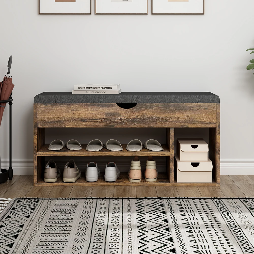 【تخزين مخفي من أعلى الرفع】يوفر مقعد تخزين الأحذية مع تصميم تخزين علوي للرفع مساحة لتخزين الأشياء الصغيرة.يمكن للمفصلات أن تحافظ على هذا التخزين، ويمكن فتح الوسادة بلطف وتثبيتها، ونقاط دعم قوية لتجنب قرص اليد.