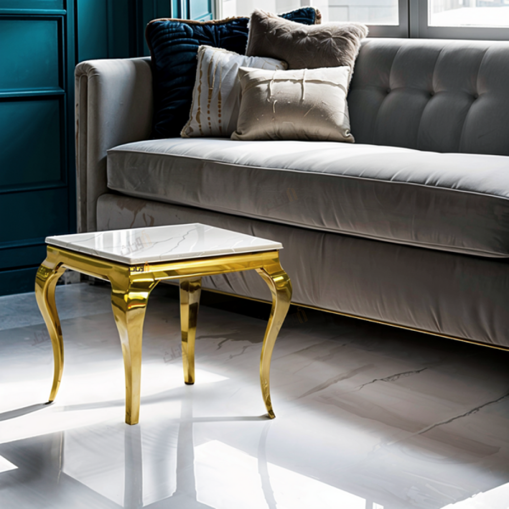 - سطح الطاولات: مصنوع من الرخام الطبيعي، مما يضفي مظهرًا فاخرًا ولمسة أنيقة.
