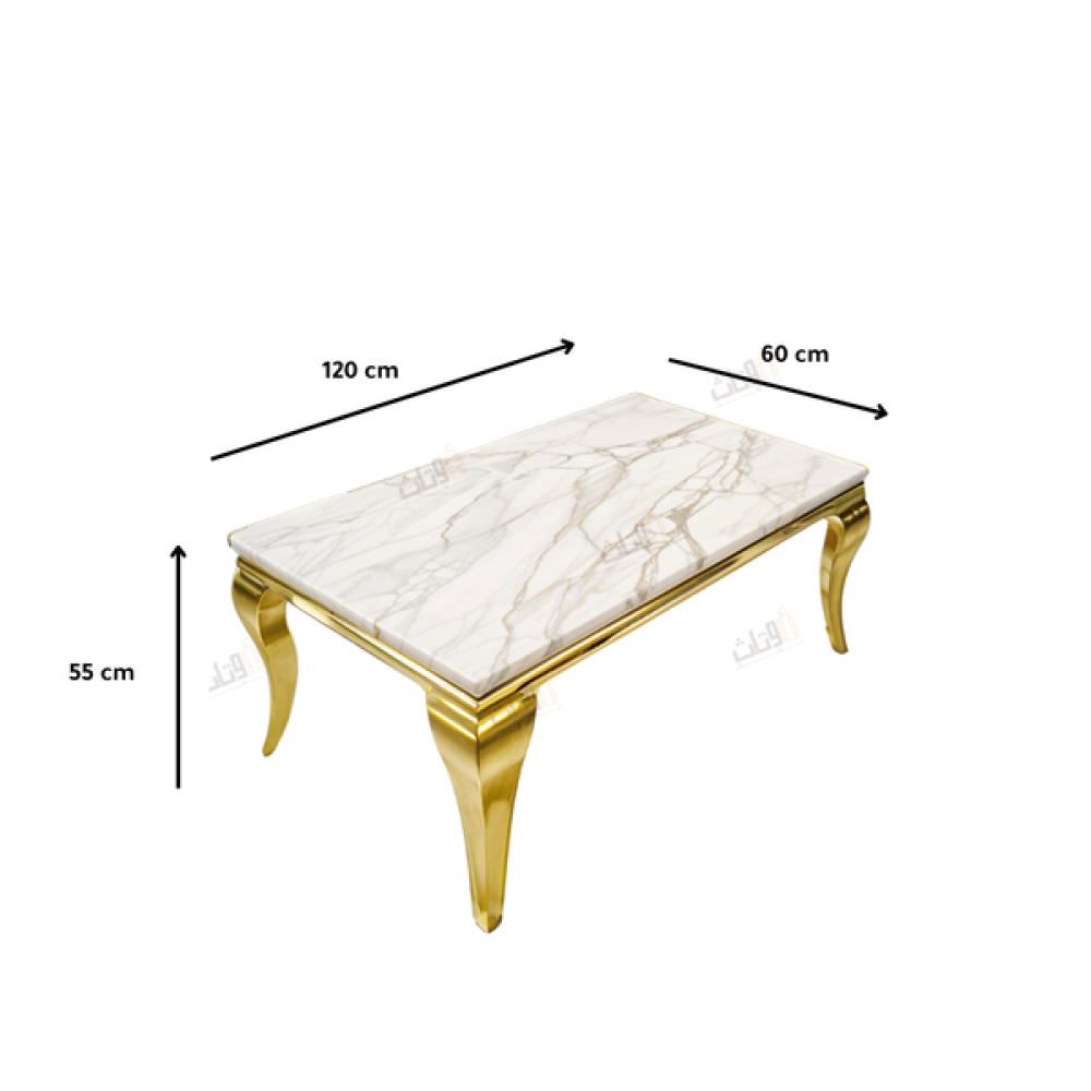 أضف لمسة من الفخامة والرقي إلى غرفة المعيشة مع طقم الطاولات الفاخر المكون من طاولة قهوة و4 طاولات جانبية. يتميز الطقم بتصميم عصري يجمع بين سطح رخامي أنيق وإطار معدني باللون الذهبي، مما يجعله مثاليًا لإضافة لمسة مميزة لأي ديكور داخلي.