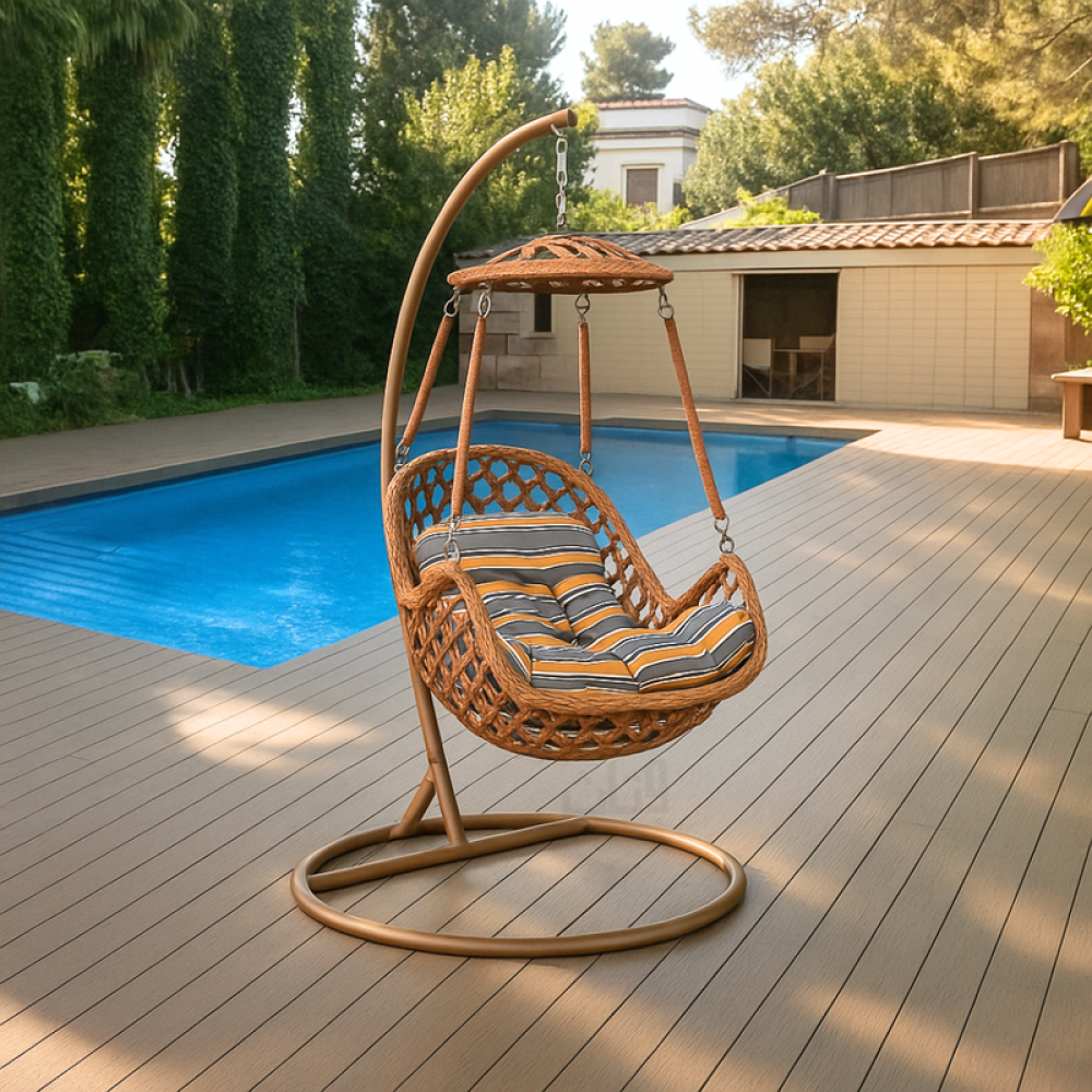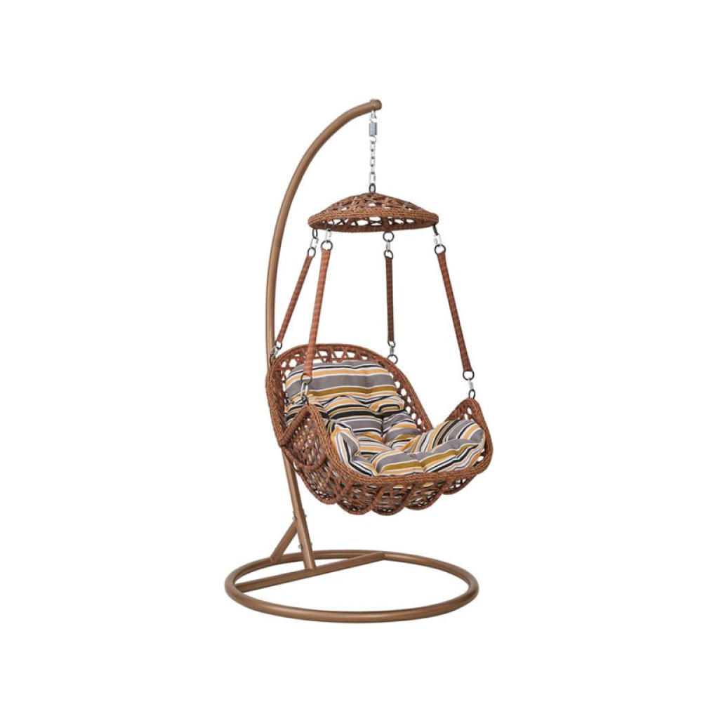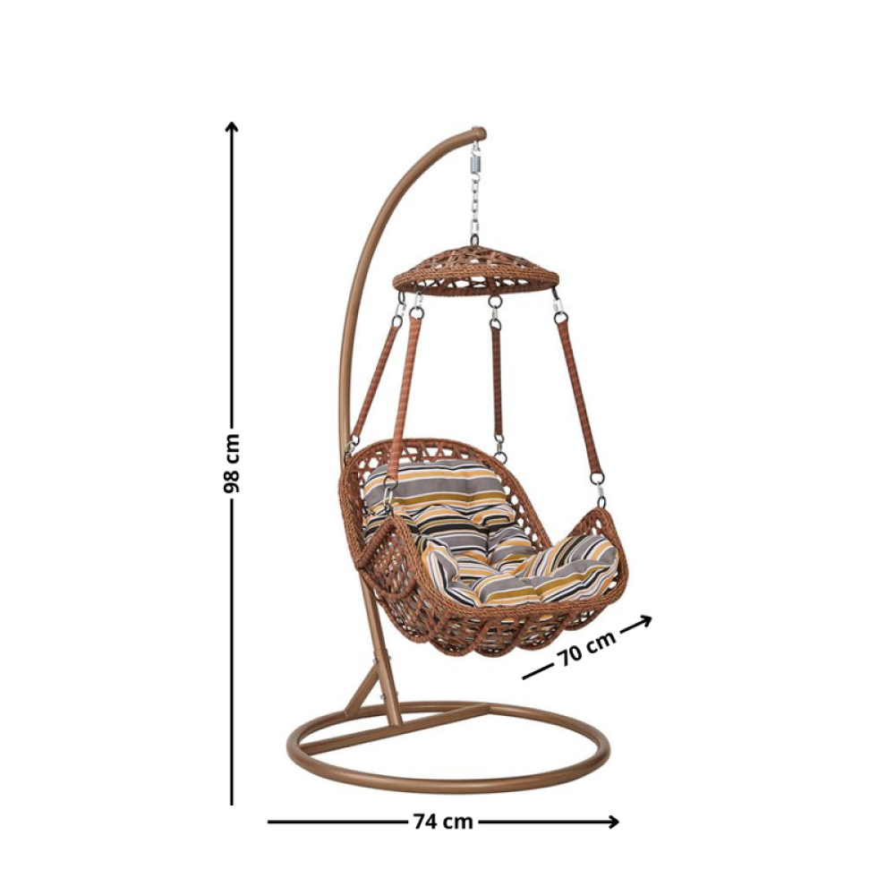 النوع : ارجوحة خارجية اللون: بني ارجوحة بمقعد واحد الخامة الاساسية : هيكل معدني مع تشطيب بخوص wicker ) خامة التنجيد : قماش فيبر خامة الارجل : معدن خامة الابعاد : الطول : 74 سم العرض : 74 سم الارتفاع : 98 سم صفاته : مثالي للاستخدام الخارجي والداخلي يتطلب شحن تعليمات العناية :المسح بمناديل مبللة الضمان : ضد عيوب الشحن والتسليم بلد المنشأ : الصين