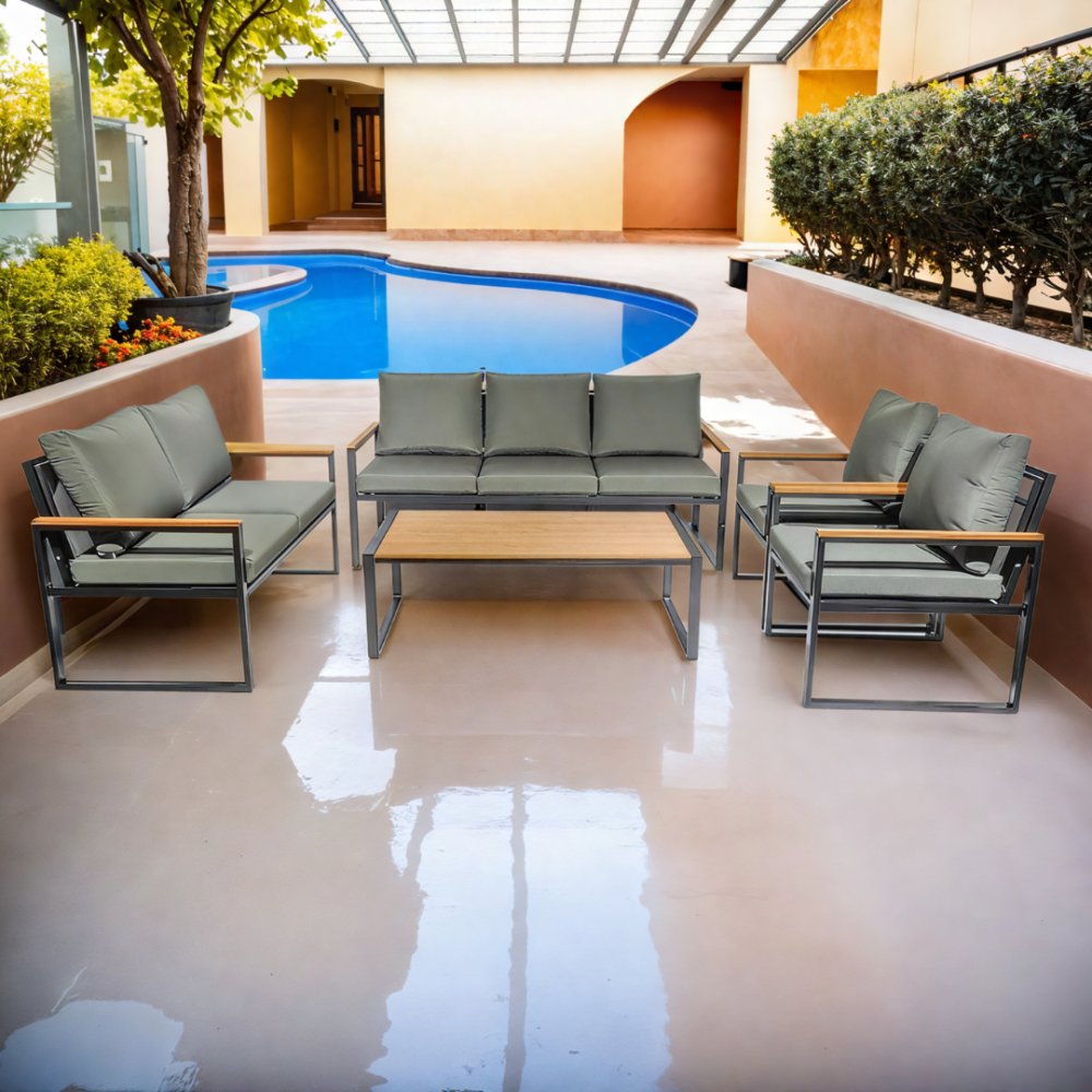 طقم جلسة خارجية باللون الرصاصي مكون من 5 قطع مع الوسائد .