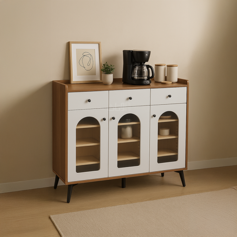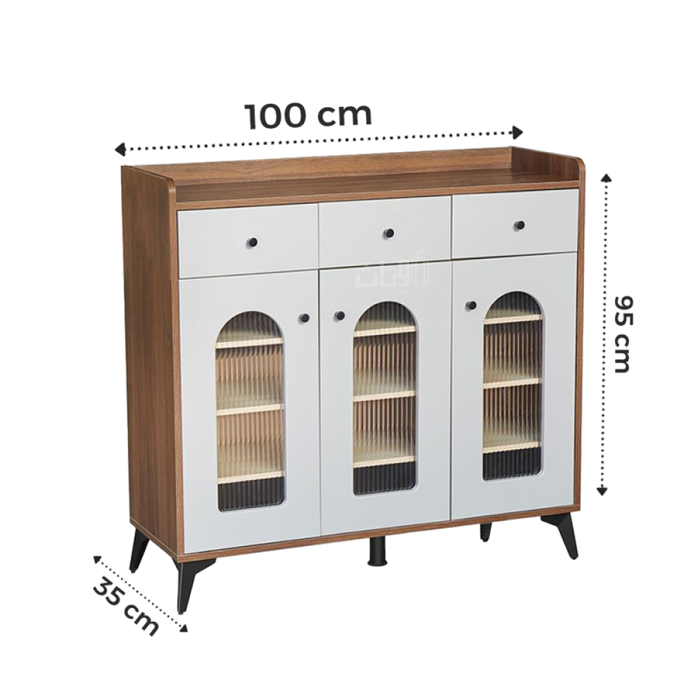 طاولة بوفيه اللون : بني المواد: خشب هندسي الأبعاد: الطول: 100 العرض : 35 الإرتفاع: 95 عدد الأبواب:3 عدد الأدراج:3 عدد الأرفف: 3 تعليمات العناية: المسح بقطعة قماش صنع في: الصين الضمان:ضد عيوب الشحن والتسليم يتطلب التركيب
