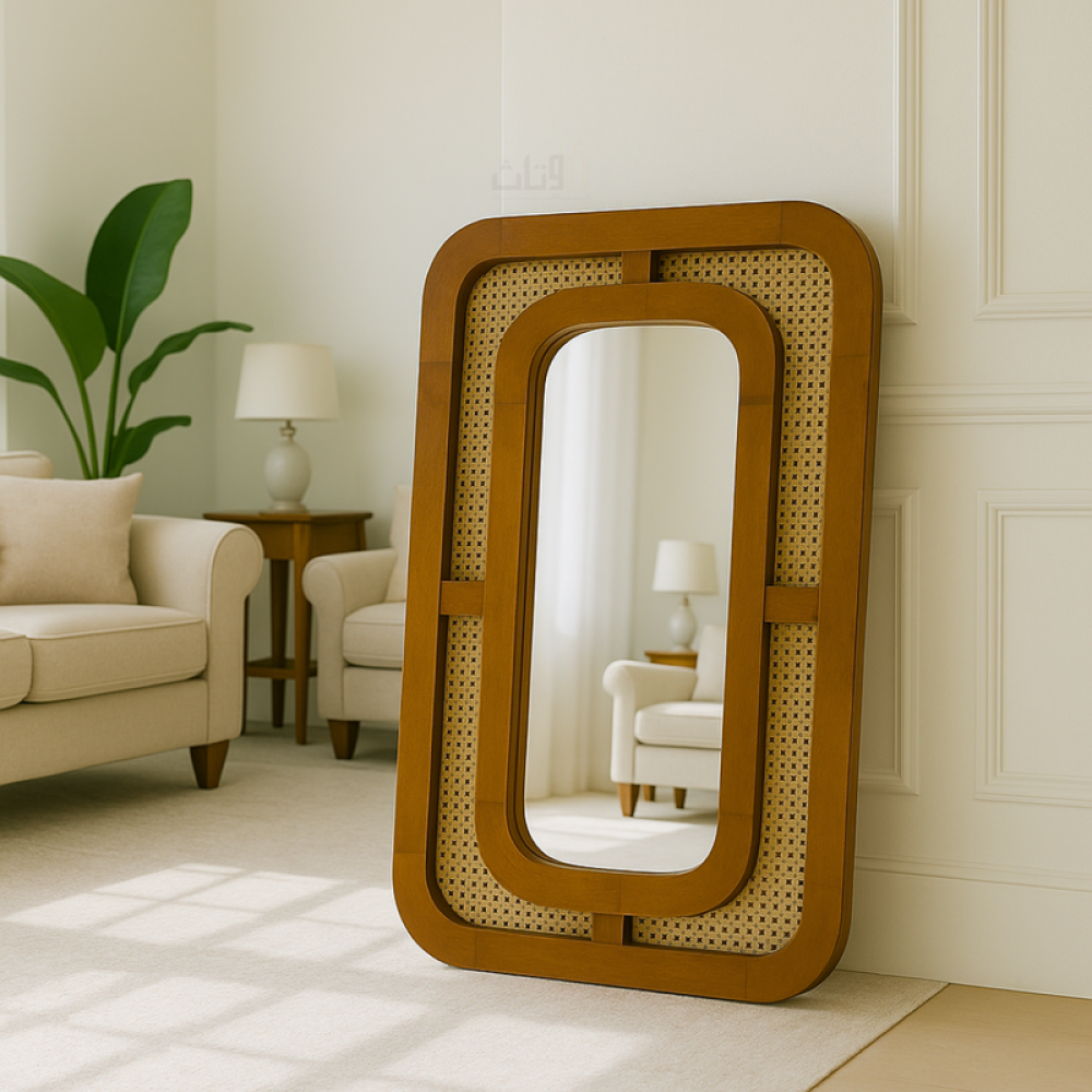 مرآة أرضية مستطيلة بإطار خشبي بني متين صناعة هندية